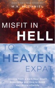 Placed on a ventilator for lung failure in 1999, M.K. McDaniel fought for her life in a drug-induced coma for three weeks. Misfit In Hell To Heaven Expat is a memoir of M.K.’s experiences before, during, and after a Dark Near-Death Experience. Her family waited and prayed, totally unaware of the horrors M.K. was bravely facing and miserably enduring in a seemingly eternal hell, culminating in her eventual glimpse of heaven and chat with her deceased fiancé. But M.K. still had work to do on Earth. During her lengthy recovery, as M.K. reflected on the purpose of her experiences in the Afterlife, she recalled the tribulations of her family ancestors and their courage to survive. If they could overcome their overwhelming obstacles, then so could she. As memories of former earthly hellish traumas surfaced and seemed to parallel her actual hell experiences, M.K. sought out others with the same story. She eventually found solace, hope, and understanding at the International Association of Near-Death Studies meetings in Seattle. IANDS offered insights, camaraderie, and joy she had nearly forgotten to be possible in this life. Uplifting, humorous, chilling, and engrossing, Misfit In Hell To Heaven Expat takes the reader by the hand to safely explore our human and otherworldly selves. Its gentle message will help the reader find their way along the bumpy, earthly road to eternity.